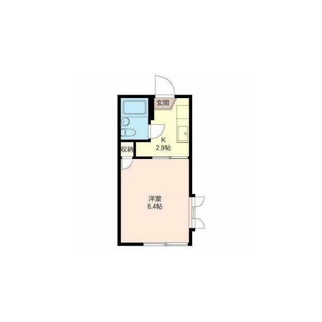 | 間取り | 1K(K2.9帖 洋室6.4帖) | 主要採光面 | 東 |