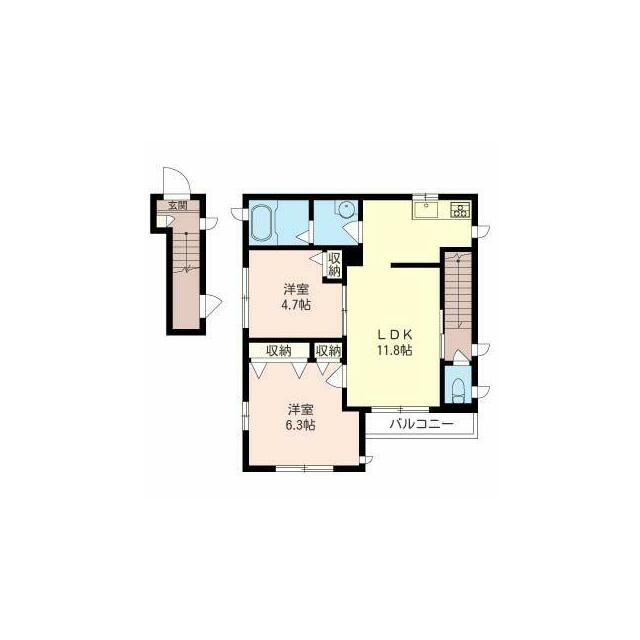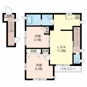 | 間取り | 2LDK(LDK11.8帖 洋室6.3帖 洋室4.7帖) | 主要採光面 | 南東 |