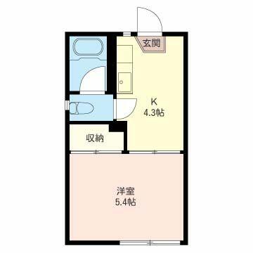 | 間取り | 1K(K4.3帖 洋室5.4帖) | 主要採光面 | 南 |