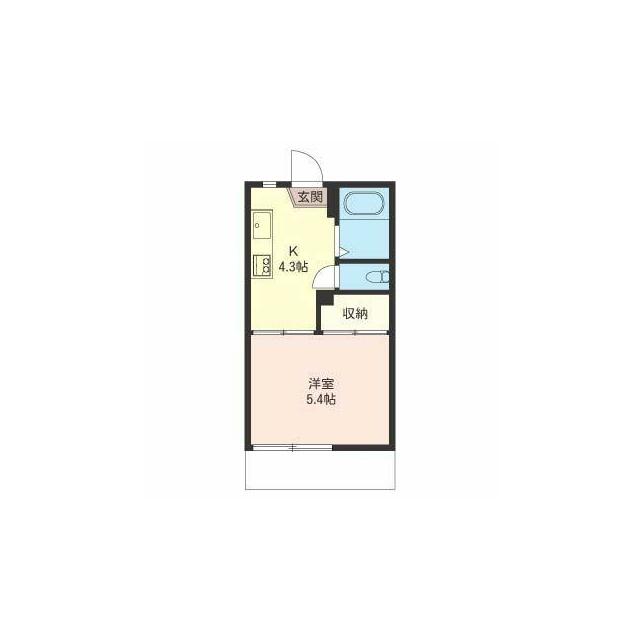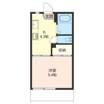 | 間取り | 1K(K4.3帖 洋室5.4帖) | 主要採光面 | 南 |