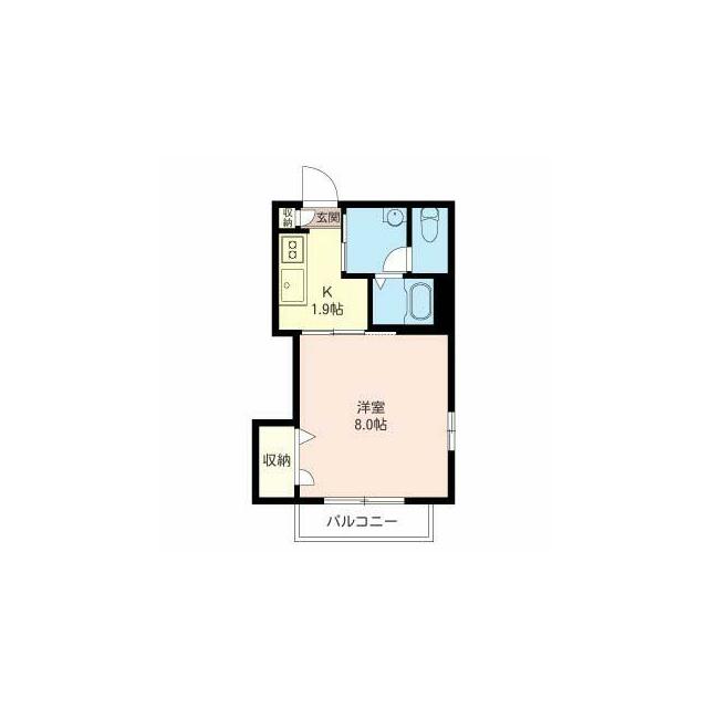 | 間取り | 1K(K1.9帖 洋室8.0帖) | 主要採光面 | 南 |