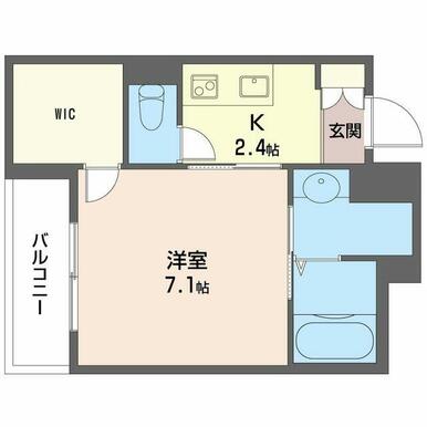 | 間取り | 1K(K2.4帖 洋室7.1帖) | 主要採光面 | 南西 |