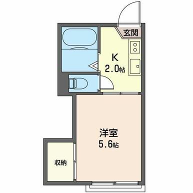 | 間取り | 1K(K2.0帖 洋室5.6帖) | 主要採光面 | 南 |
